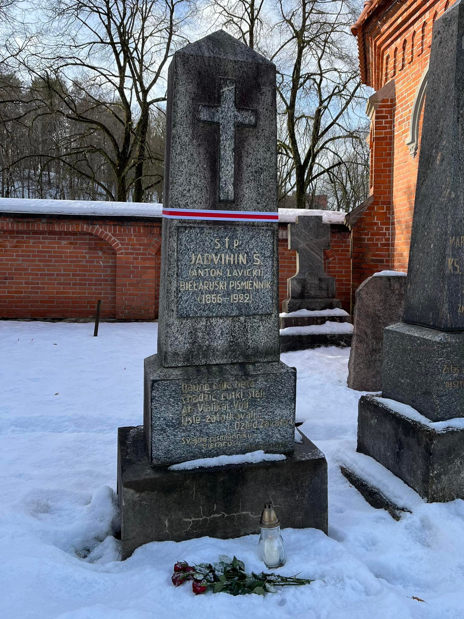 - Ядвігін Ш. (сапр. Лявіцкі Антон Іванавіч) (4.1.1869 – 24.2.1922). Празаік, паэт, публіцыст, грамадскі дзеяч. Пахаваны на могілках Роса ў Вільні, Літва (справа ад галоўнага ўваходу, першы шэраг каля сцяны)