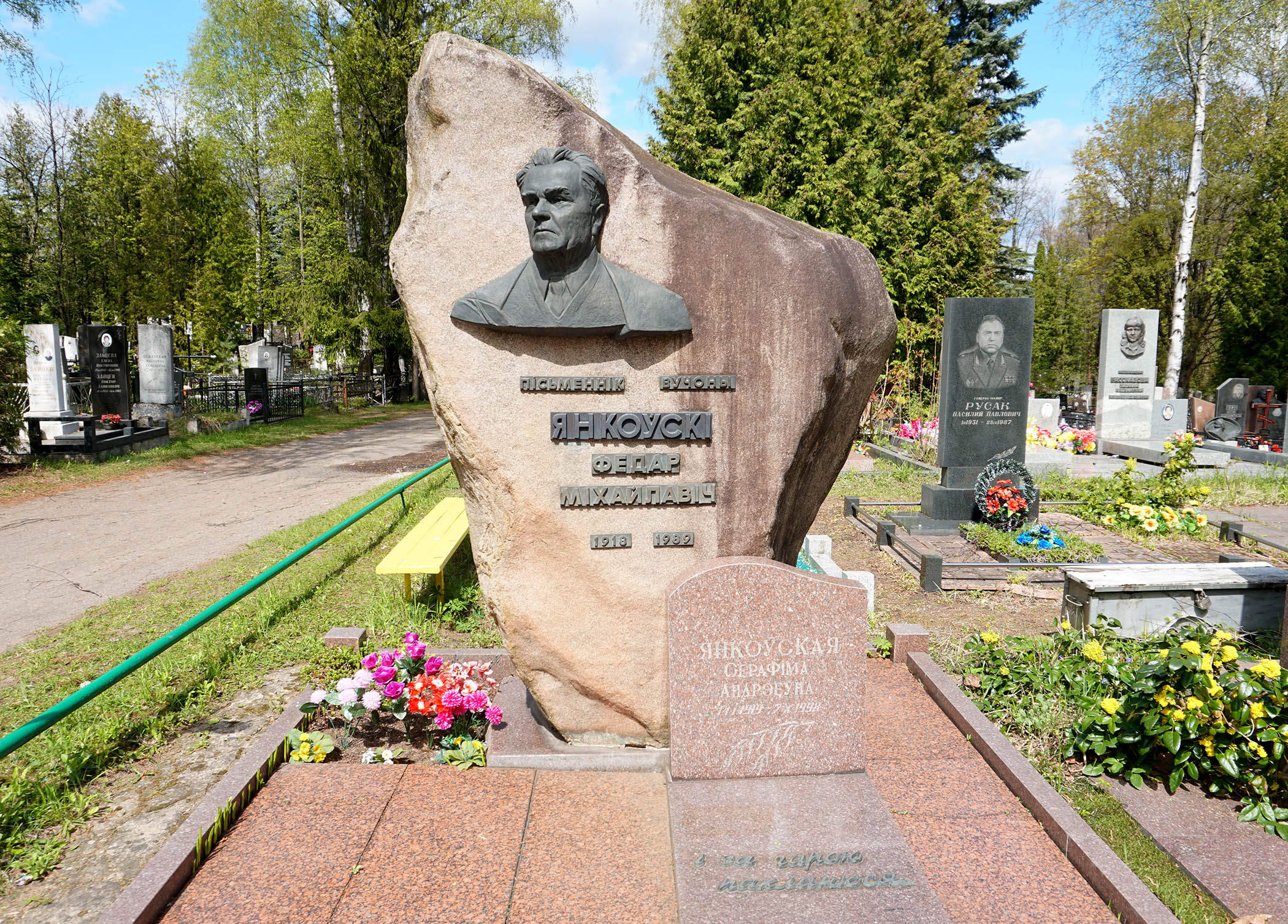 - Янкоўскі Фёдар Міхайлавіч (21.9.1918 – 13.11.1989). Мовазнаўца, празаік, педагог. Сябра СП з 1968 г. Пахаваны на Усходніх могілках Мінска.