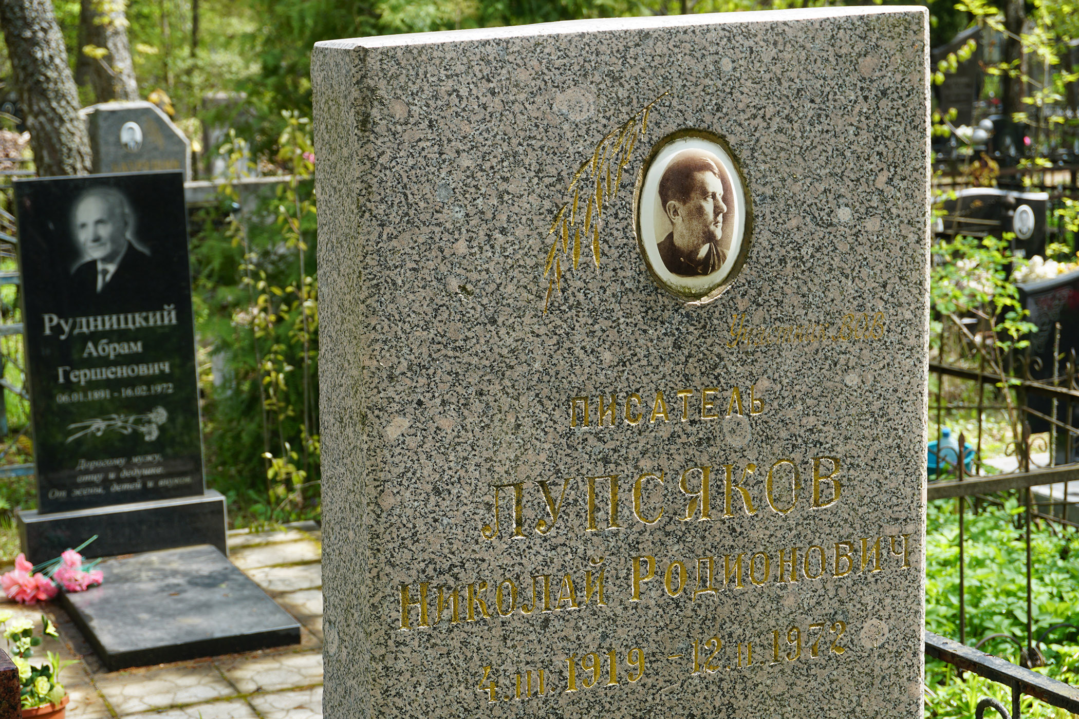- Лупсякоў Мікола Радзівонавіч (4.3.1919 – 12.2.1972). Празаік. Сябра СП з 1944 г. Пахаваны на Чыжоўскіх могілках Мінска (сектар 6/1, рад 8, уч. 59).