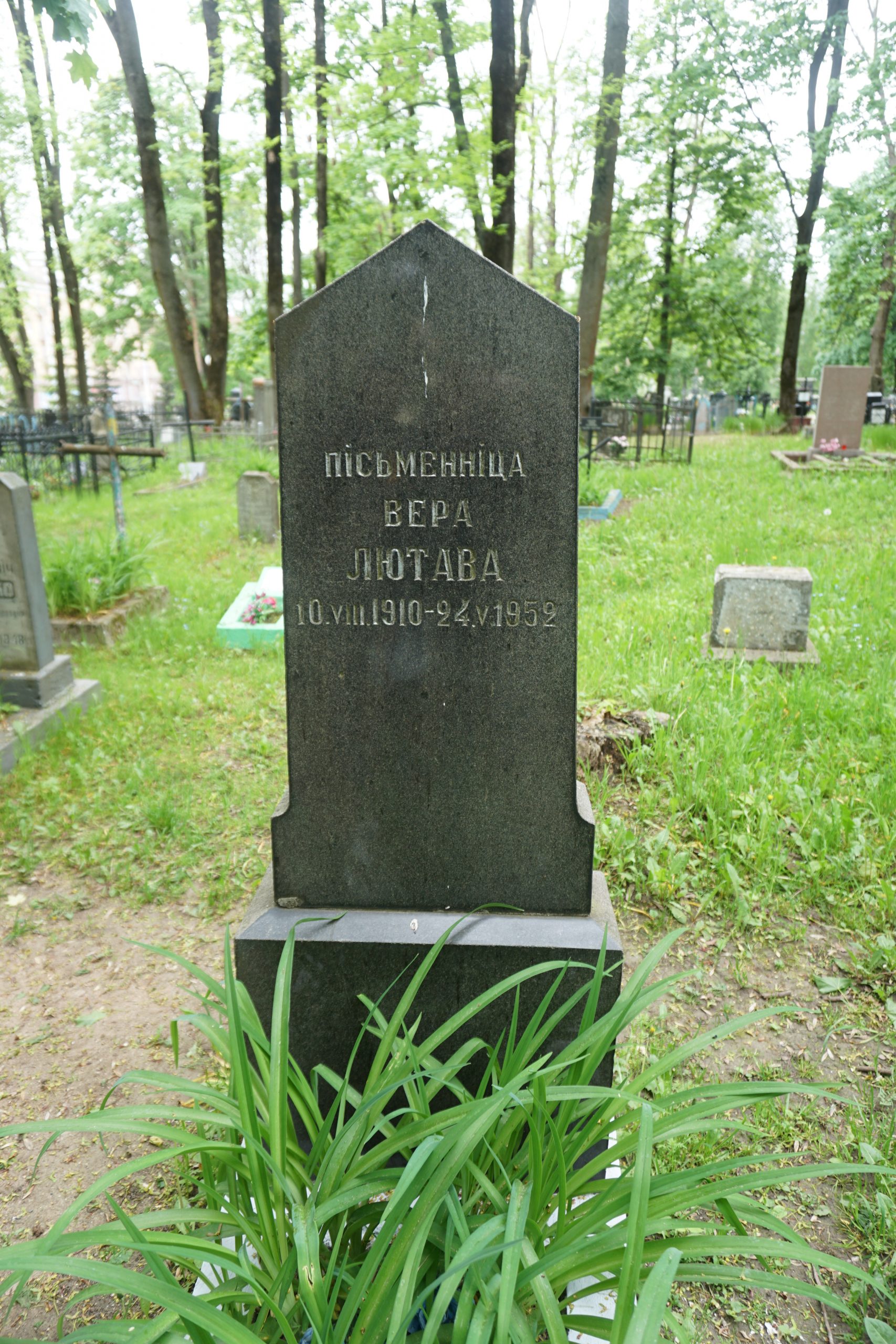 - Лютава Вера Сяргееўна (10.8.1912 – 25.5.1954). Паэтка, празаік. Сябра СП з 1946 г. Памерла і пахаваная на Вайсковых могілках ў Мінску.