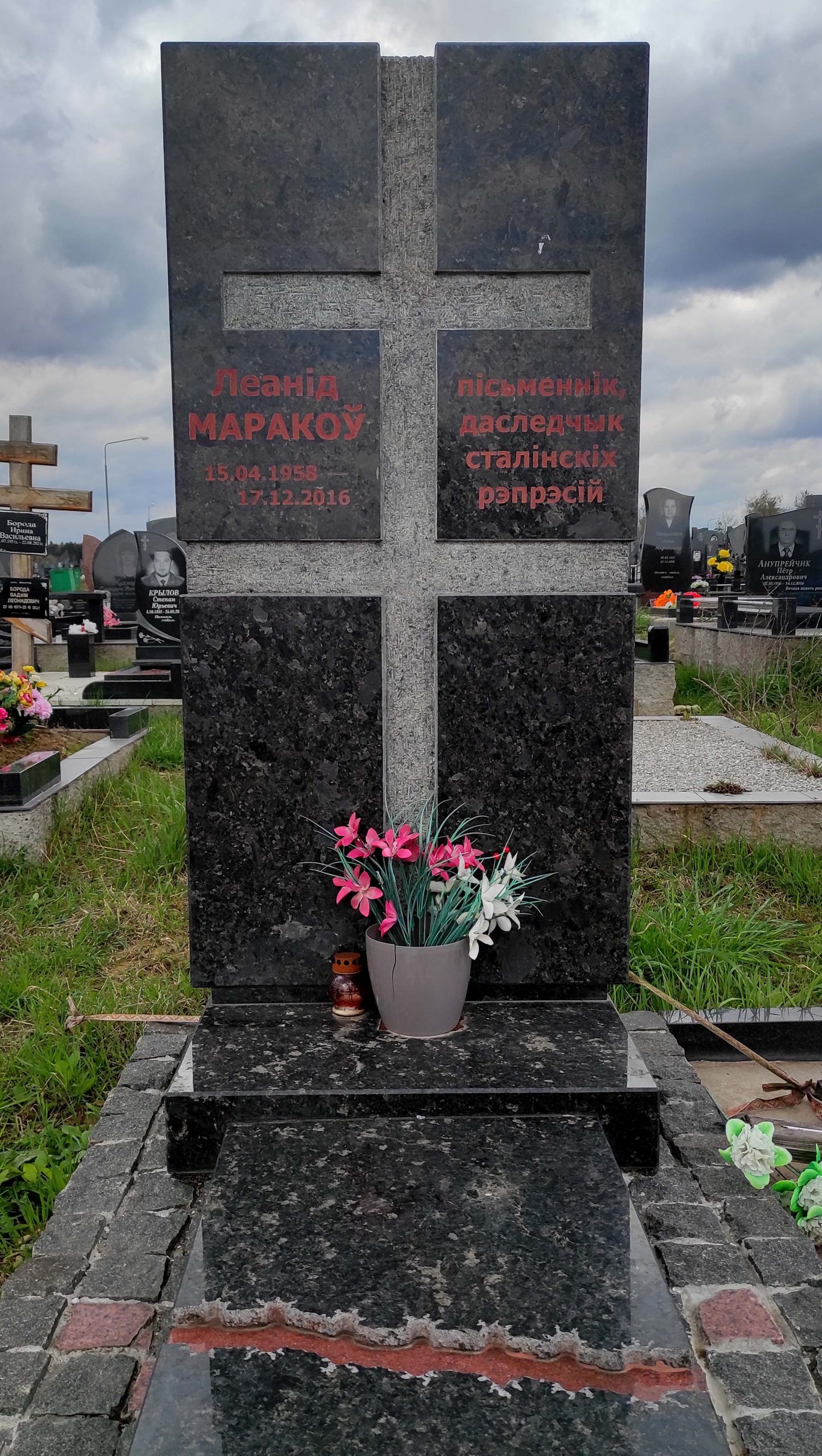 - Маракоў Леанід Уладзіміравіч (15.4.1958 – 17.12.2016). Празаік, архівіст, гісторык. Сябра СБП. Пахаваны на Заходніх могілках Мінска.
