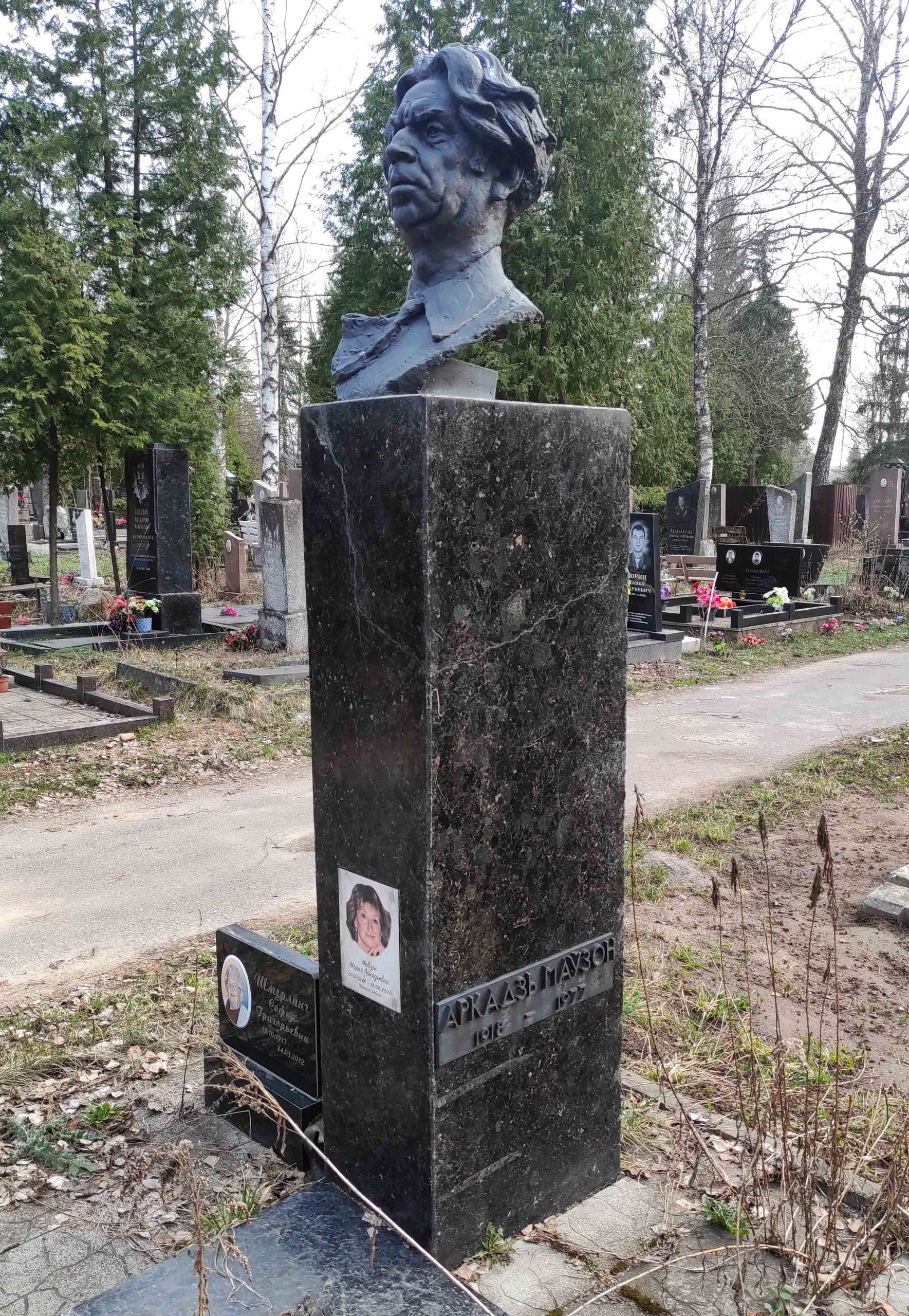 - Маўзон Аркадзь (сапр. Маўшэнзон Арон Іосіфавіч) (23.9.1918 – 19.8.1977). Драматург. Сябра СП з 1947 г. Пахаваны на Паўночных могілках у Мінску.