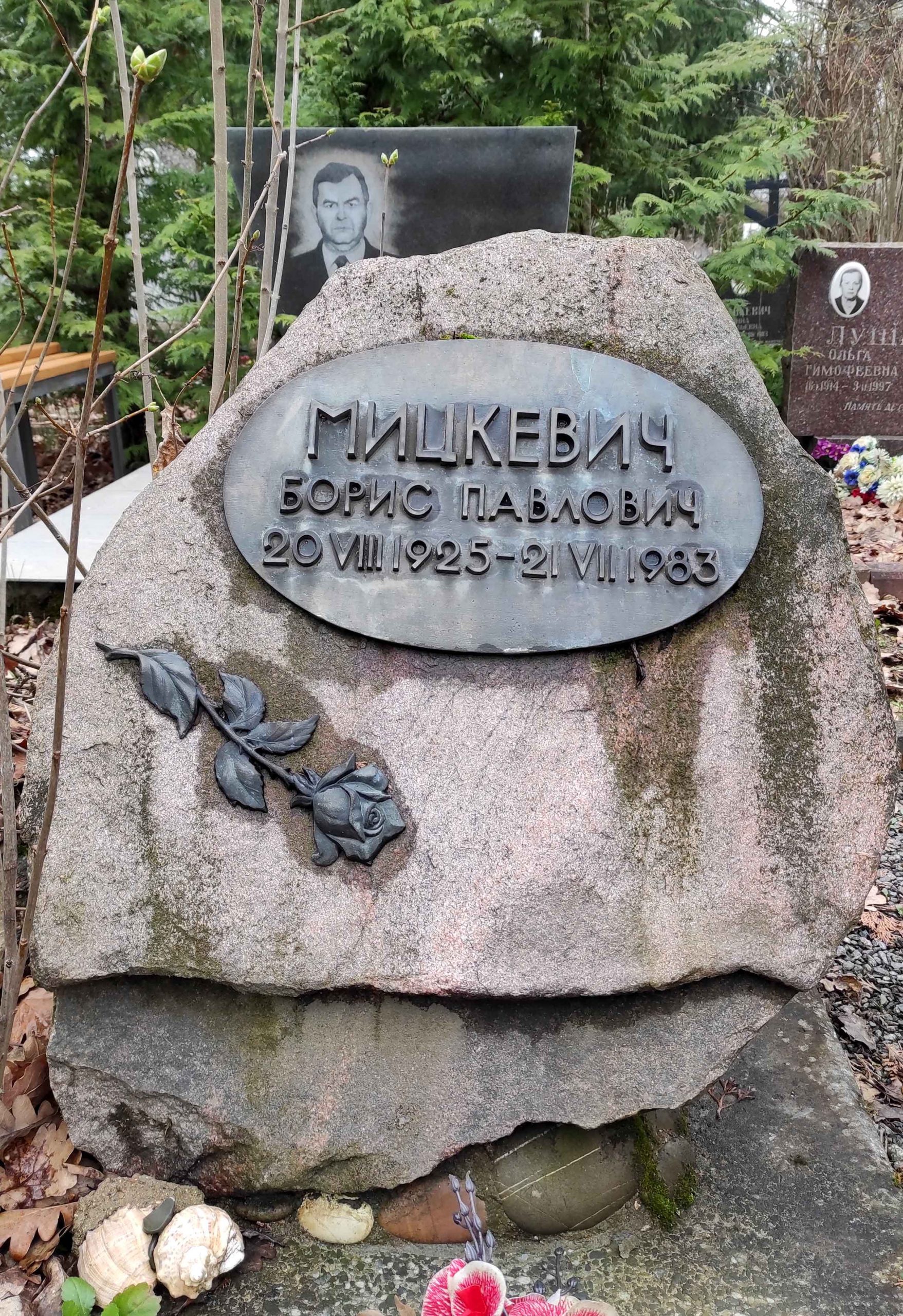 - Міцкевіч Барыс Паўлавіч (20.8.1925 – 22.7.1983). Літаратуразнаўца. Пахаваны на Паўночных могілках Мінска.