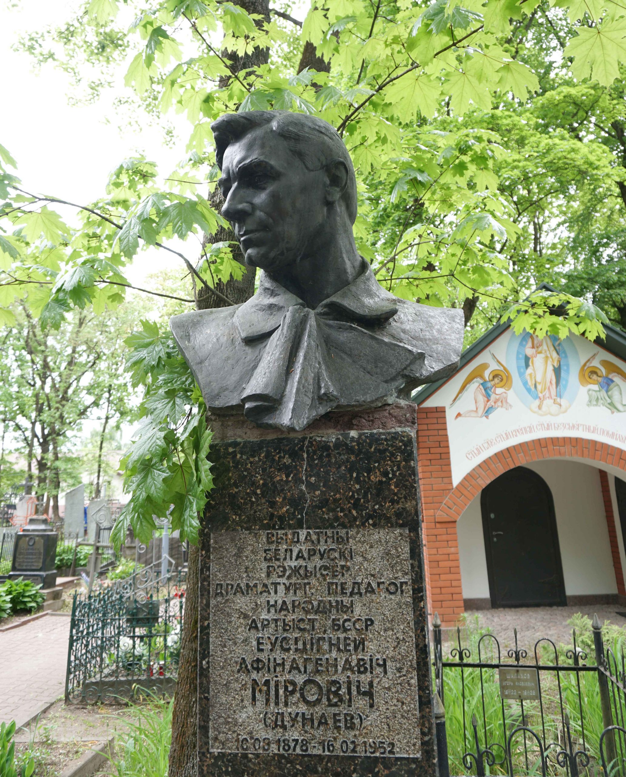 - Міровіч Еўсцігней (сапр. Дунаеў Еўсцігней Афінагенавіч) (10.8.1878 – 16.2.1952). Драматург, акцёр. Пахаваны на Вайсковых могілках у Мінску.