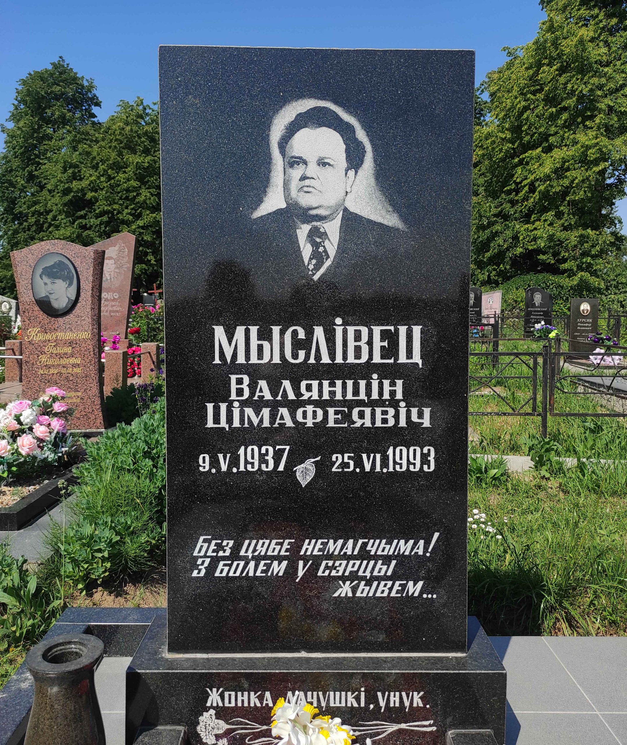 - Мыслівец Валянцін Цімафеевіч (9.5.1937 – 25.6.1993). Празаік. Сябра СП з 1967 г. Пахаваны на могілках в. Хазянінкі Пухавіцкага раёна Мінскай вобласці.