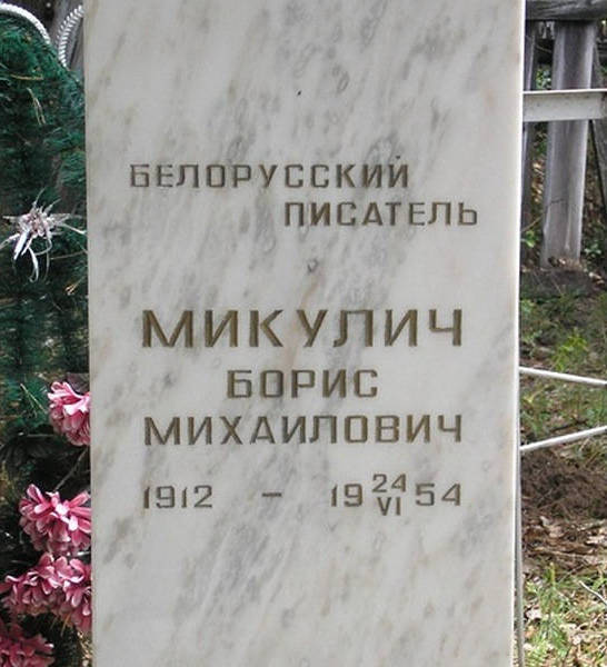 - Мікуліч Барыс Міхайлавіч (19.8.1912 – 17.6.1954). Празаік, крытык. Сябра СП з 1934 г. Пахаваны ў в. Машукоўка Матыгінскага раёна Краснаярскага краю, РФ.