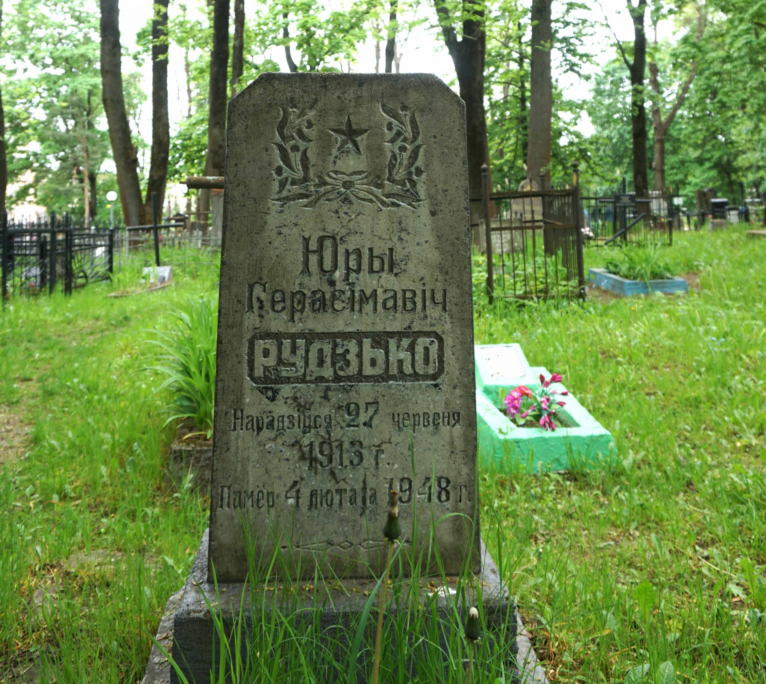 - Рудзько Юрый Герасімавіч (27.6.1913 – 4.2.1948). Празаік, драматург, нарысіст. Сябра СП з 1947 г. Пахаваны на Вайсковых могілках Мінска.