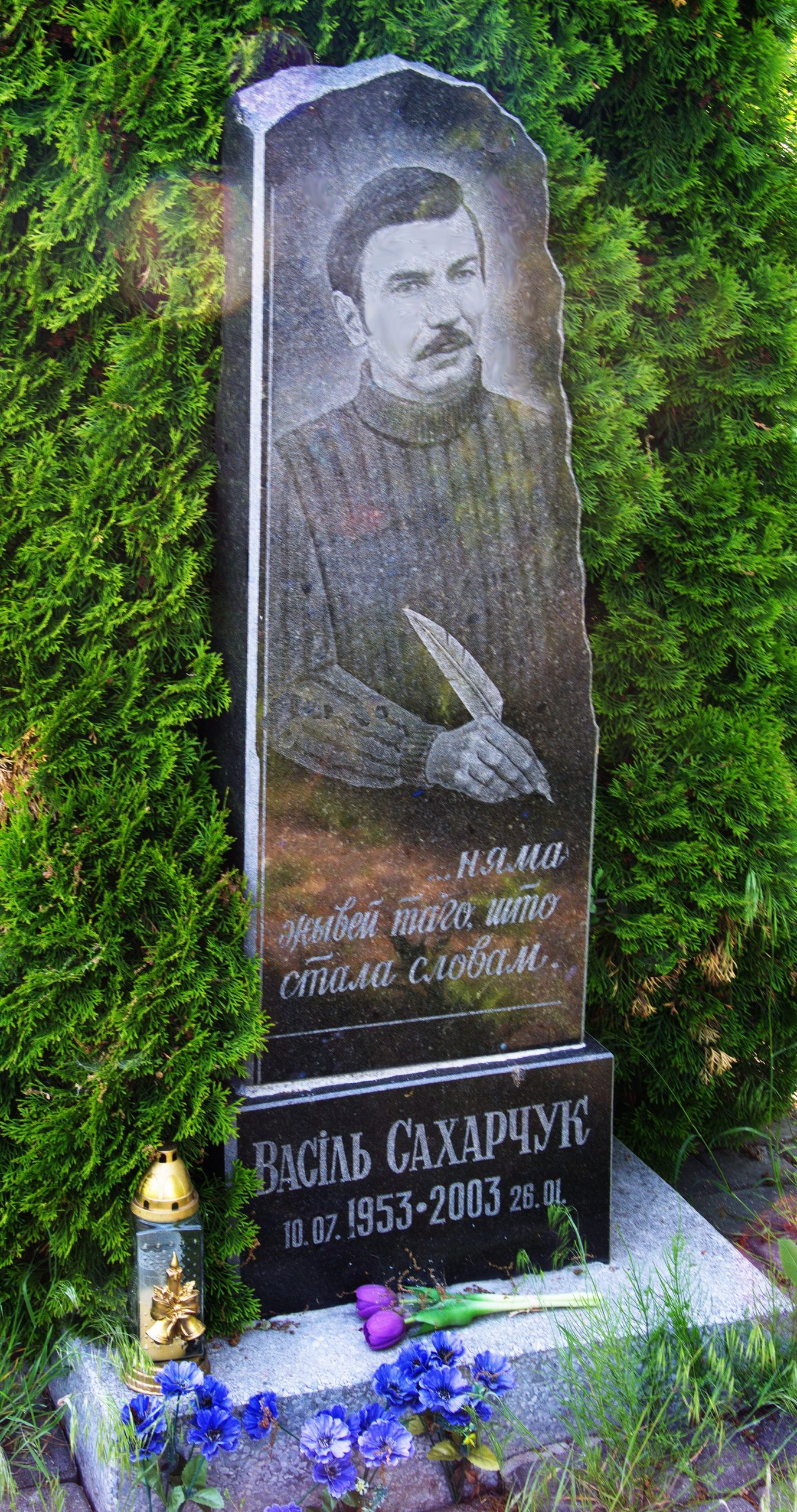 - Сахарчук Васіль Якаўлевіч (10.7.1953 – 27.1.2003). Паэт, перакладчык. Сябра СП з 1988 г. Пахаваны на гарадскіх могілках у Жабінцы, Брэсцкай вобласці.
