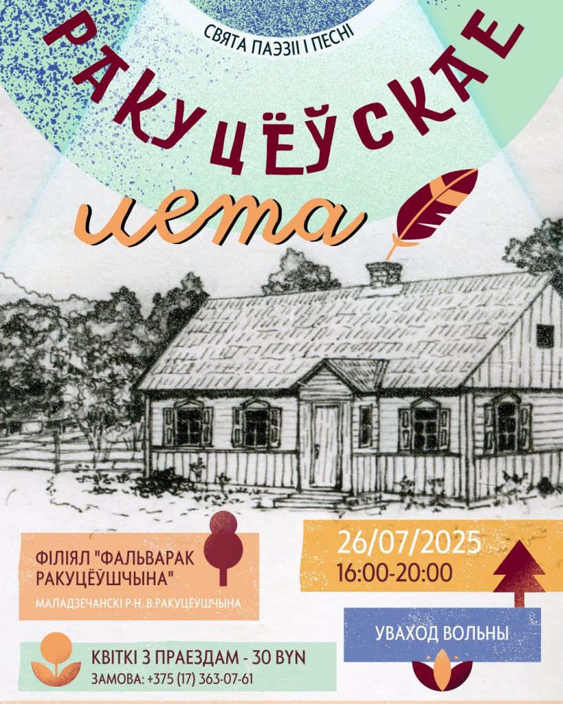 Па традыцыі — у апошнюю суботу ліпеня — музей Максіма Багдановіча запрашае на свята паэзіі і песні “Ракуцёўскае лета – 2025”. У праграме чакаюцца: