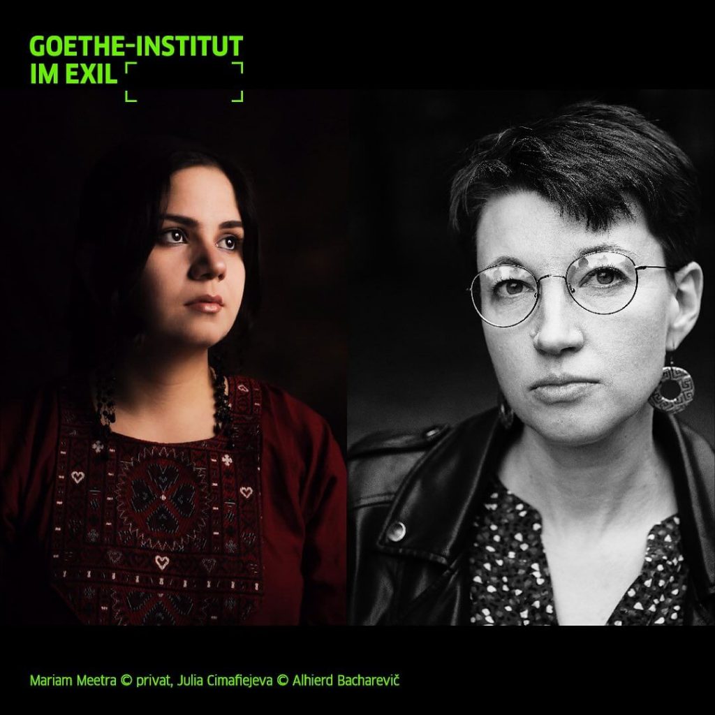5 САКАВІКА ў Берліне Юля Цімафеева і Марыям Мээтра (Mariam Meetra, Афганістан) выступяць ў межах новай серыі мерапрыемстваў Інстытута імя Гётэ ў выгнанні “Літаратуры ў выгнанні”. Дзве аўтаркі пачытаюць свае творы ў арыгінале, прагучаць пераклады, а таксама адбудзецца дыскусія пра ўласны досвед выгнання, магчымасці і праблемы творчасці і літаратуры за межамі радзімы. Мадэраваць сустрэчу будзе Марцін Янкоўскі (stadtsprachen magazin). Мова мерапрыемства — ангельская