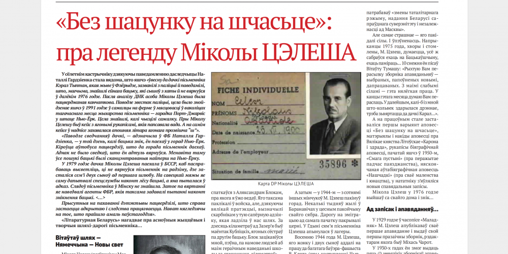 ПОВЯЗЬ: «Без шацунку на шчасьце»: пра легенду Міколы ЦЭЛЕША