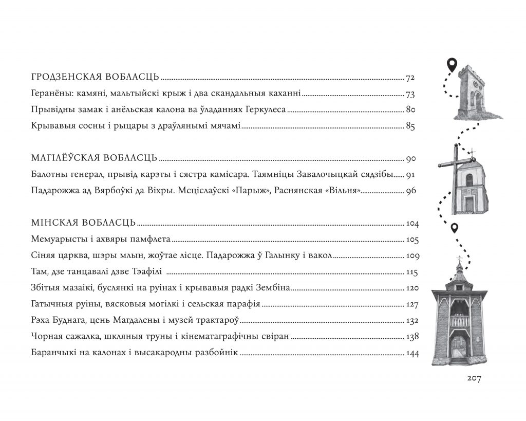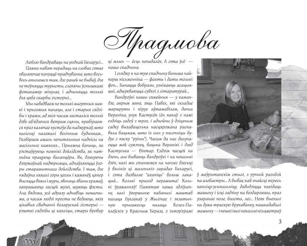 Разам з аўтаркай і ейнай сямейнай камандай чытачы адправяцца не толькі да магутных замкаў і прыгожых палацаў, але і да старых сядзібаў і храмаў, ад якіх часам засталіся толькі дзве аб’едзеныя ветрам сцяны, прабяруцца праз калючае кустоўе да падмуркаў, што калісьці належалі велічным будынкам”, — расказваюць пра кнігу ў сацсетках “Акадэмкнігі”, дзе можна купіць навінку. Таксама кнігу можна замовіць анлайн.