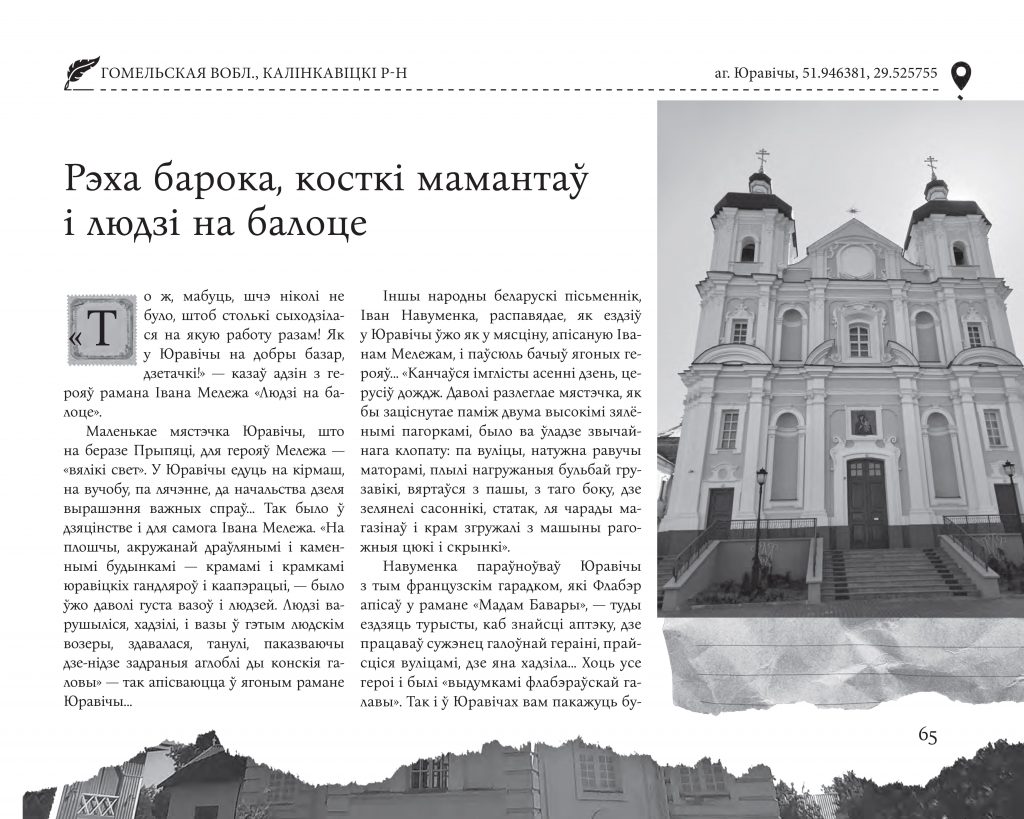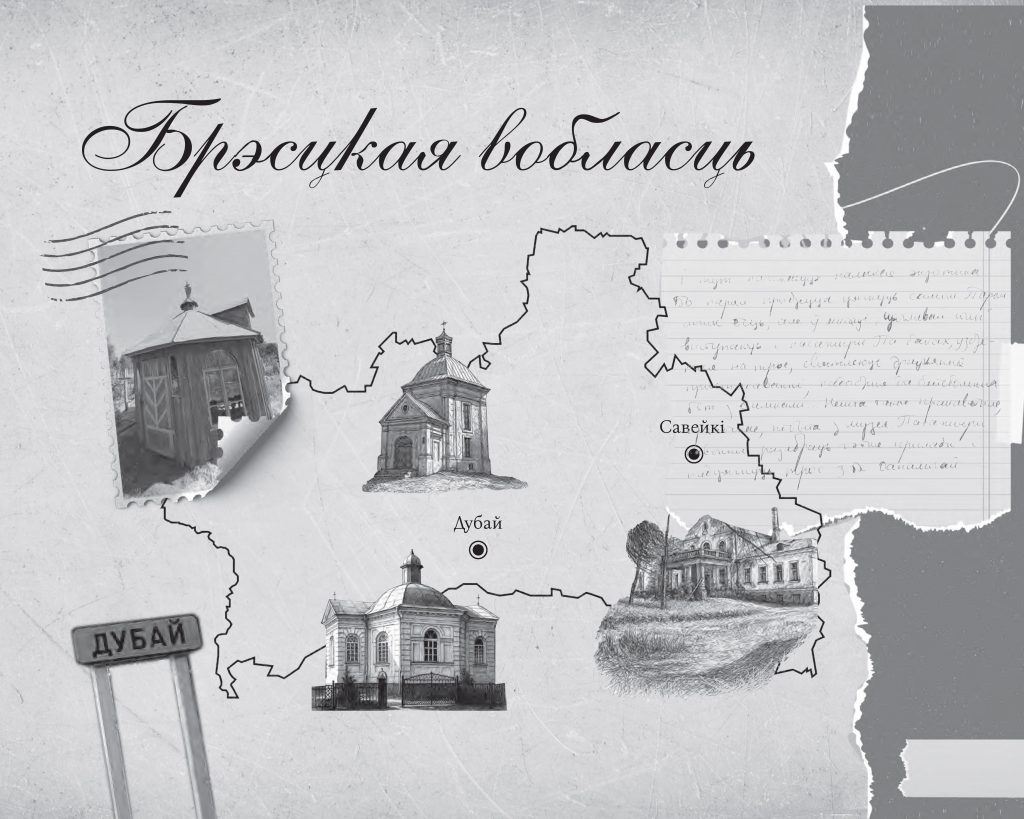 “Гатычны млын у Пагосце, дарога, брукаваная трылінкай, сядзіба вупыроў-Валадковічаў, якія спалі ўдзень, а працавалі ноччу, ягіпецкая піраміда на Уздзенскіх могілках і мамант на вяршыні Юравіцкай гары, маўрытанскі стыль палаца Козел-Паклеўскіх у Чырвоным Беразе і каменныя крыжы ў Межава.
