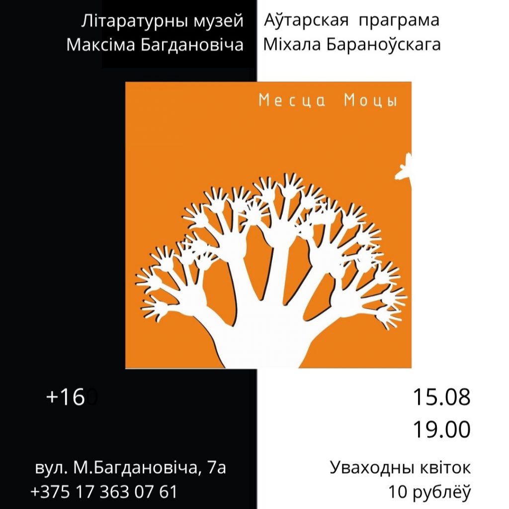 Падчас прэзентацыі кнігі Міхал Бараноўскі пачытае, паспявае песні з праграмы “Месца моцы”, а таксама запрашае наведнікаў паразважаць пра часовасць і пазачасавасць паэзіі, даведацца пра музейныя планы, набрацца сілы і натхнення.
