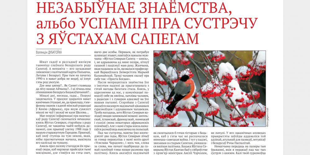 АСОБЫ: успамін Валянціна ДУБАТОЎКІ “Незвычайнае знаёмства” пра сустрэчу з Яўстахам САПЕГАМ