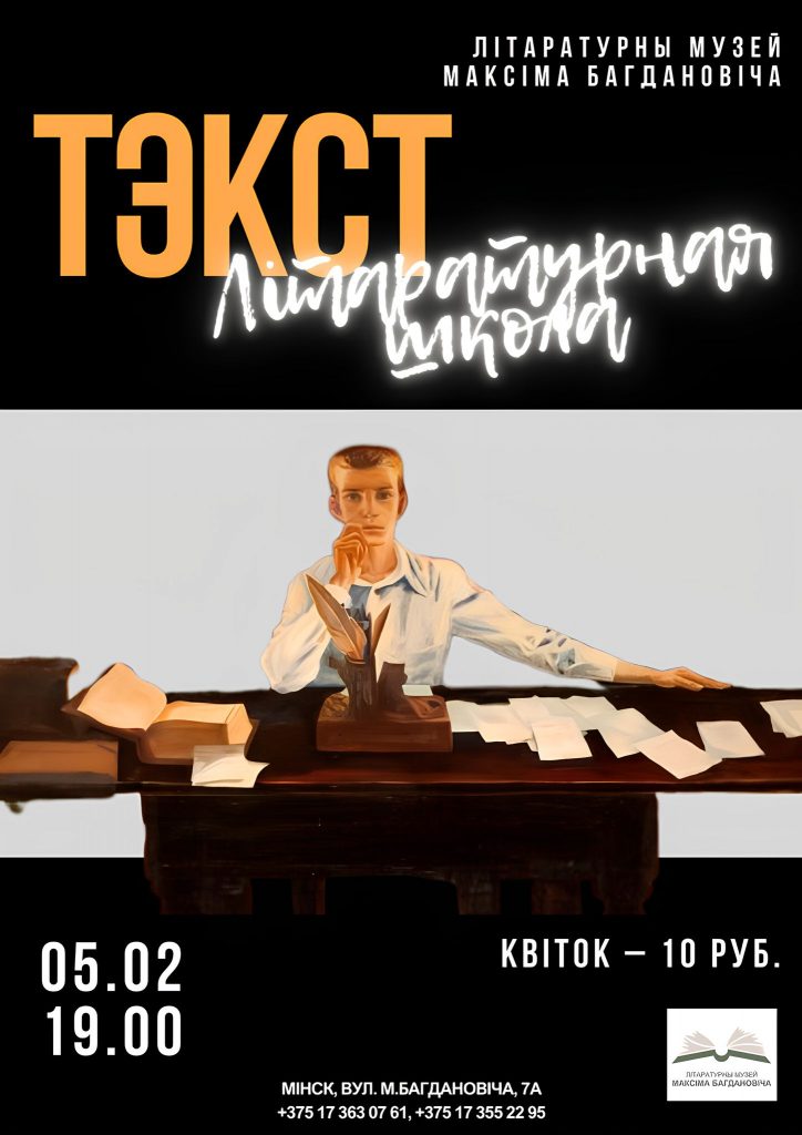 5 лютага 2025 году ў 19:00 у Літаратурным музеі Максіма Багдановіча распачне працу літаратурная школа. Тэма першай сустрэчы — “ТЭКСТ: Творчая майстэрня Максіма Багдановіча”.