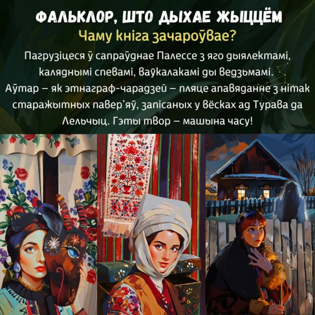 Прысутнічаюць яркія апісанні традыцый (вячоркі, калядныя абрады). Знайшлося месца і фальклорным элементам беларускага Палесся: легендам пра ваўкалакаў, цмока, святыні прыроды”.