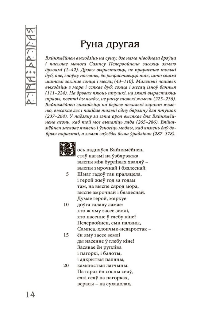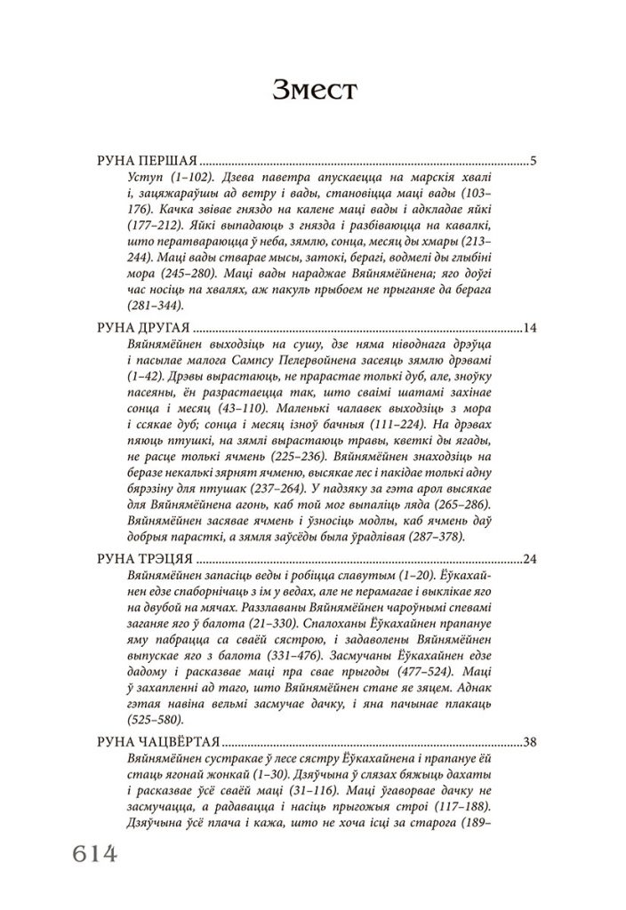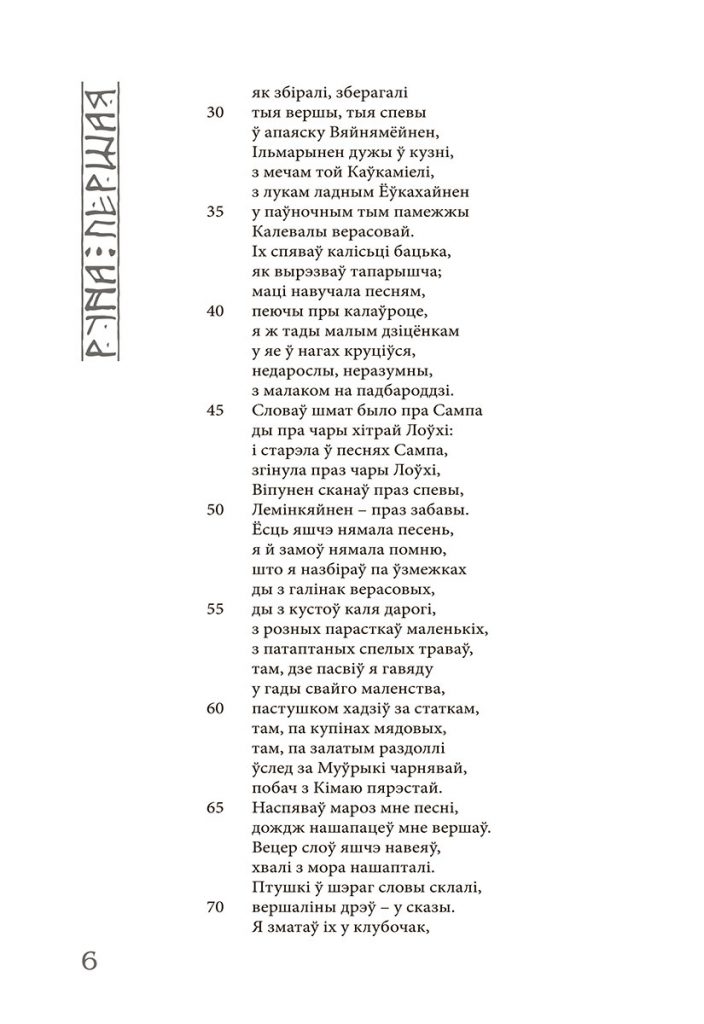 Упершыню “Калевала” па-беларуску выйшла ў лістападзе ў выдавецтве Змітра Коласа у 2015 годзе. На адрозненне ад шэрагу іншых перакладаў эпасу на замежныя мовы пераклад на беларускую быў зроблены непасрэдна з арыгіналу і выдатна перадае ўсе ягоныя адметнасці: і мову, і інтанацыю, і вобразны свет.