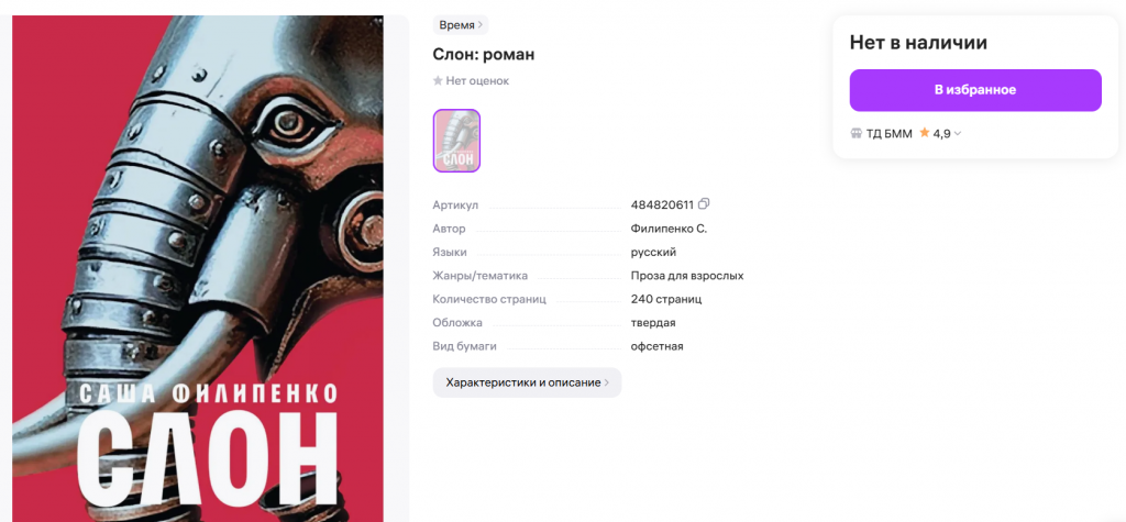 Раман “Слон” Сашы Філіпенкі з’явіўся на маркетплэйсе Wildberries, але пытанне з продажамі рамана было “ўрэгулявана” неабыякавымі менш чым за суткі.