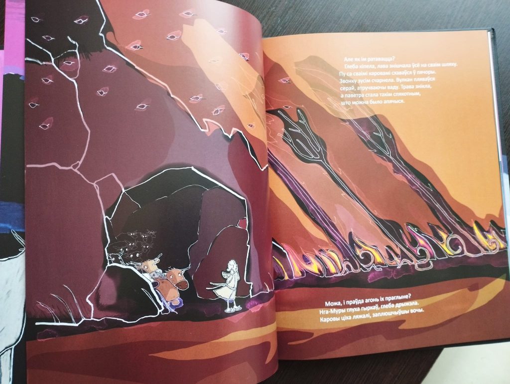 “Вулкан Нга-Муры ажывае. Пачынаецца вывяржэнне, усе бягуць з маленькае выспы. Усе, акрамя пастуха Пу, які адмаўляецца кінуць тры сотні сваіх кароў. Разам з каровамі ён глядзіць, як чаўны сяброў ператвараюцца ў кропачкі на даляглядзе мора. Але хутка ў Пу зʼяўляецца новы сябар – цялятка, што нарадзілася ў яго на вачах…”
