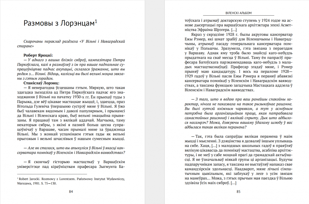 “Віленскі альбом” ўяўляе сабой выбраныя ўспаміны доктара Станіслава Лорэнца (Stanisław Lorentz), віленскага кансерватара ў 1929—1935 гадах, які адказваў за захаванне і рэстаўрацыю гістарычных помнікаў.