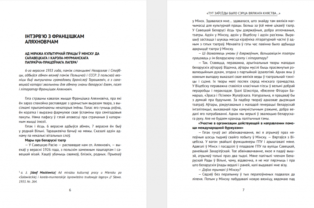 У зборнік “Тут заўсёды было сэрца Вялікага Княства…” ўвайшлі пераклады некаторых газетных артыкулаў Юзафа Мацкевіча 1930-х гадоў, перадусім тых, якія на думку перакладчыка былі б цікавыя беларускаму чытачу. Сярод іншага, некалькі інтэрв’ю з драматургам, тэатральным дзеячам і празаікам Францішкам Аляхновічам пасля адбыцця некалькіх гадоў катаргі ў Салавецкім лагеры.