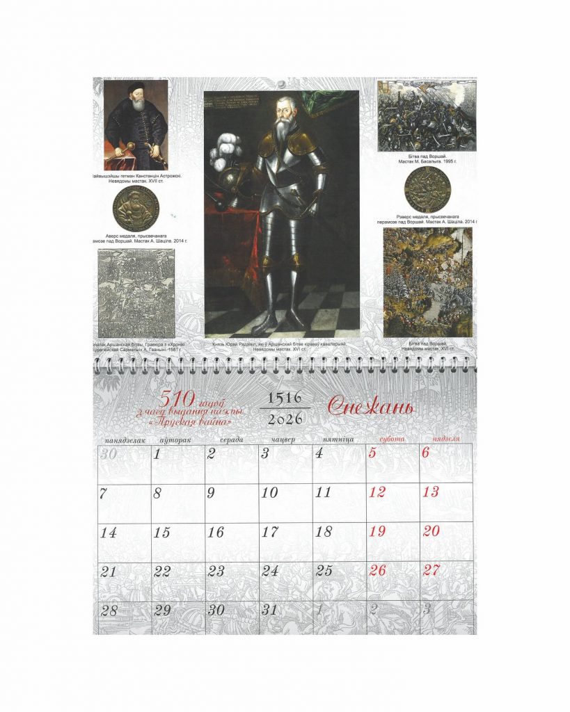 Выдавецтва “Тэхналогія” падрыхтавала новы каляндар на 2026 год, прысвечаны 510-годдзю выдання паэмы “Пруская вайна” Яна Вісліцкага.