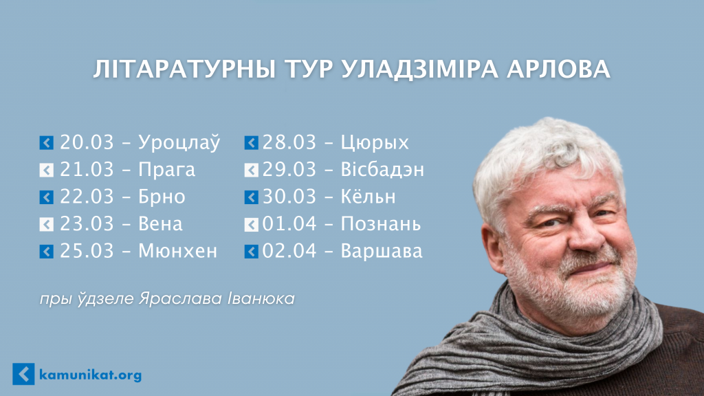 Пісьменнік і папулярызатар гісторыі Уладзімір Арлоў выпраўляецца ў літаратурнае турнэ. Разам з са стваральнікам Фонда і інтэрнэт-бібліятэкі “Камунікат” Яраславам Іванюком пісьменнік наведае 5 краін і 10 гарадоў.