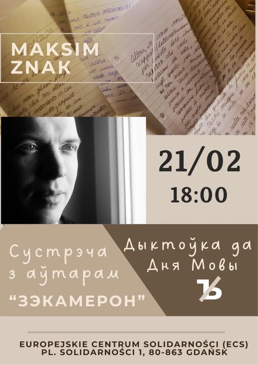 Максім Знак прачытае дыктроўку ў Еўрапейскім цэнтр Салідарнасці ў Гданьску