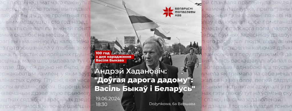 Цэнтр беларускай культуры ў Беластоку запрашае на святкаванне 100-ай гадавіны нараджэння Васіля Быкава. Творы Быкава перакладзеныя больш чым на 50 моваў свету і неаднаразова выходзілі па-польску. Апошняя з іх – «Доўгая дарога дадому» ў перакладзе Яанны Бернатовіч – пабачыла свет у 2023 годзе.