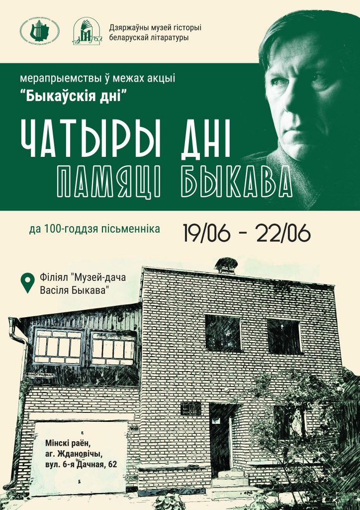 З 19 па 22 чэрвеня на тэрыторыі колішняга лецішча пісьменніка, а сёння філіяла музея гісторыі беларускай літаратуры “Музей-дача Васіля Быкава” пройдзе святкаванне юбілею. Сярод актыўнасцяў і літаратурна-мастацкія пленэры, і экскурсіі-лекцыі, і віктарына па загадкавых старонках творчасці пісьменніка і многа чаго яшчэ. З поўнай праграмай можна азнаёміцца тут.