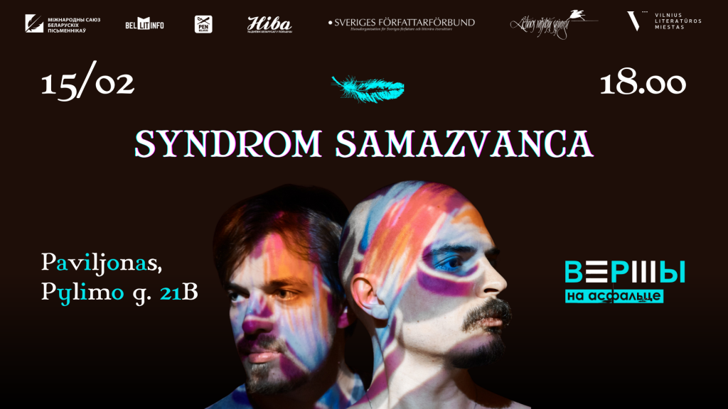 15 лютага ў сталічным бар-клубе “Павільёнас” разгорнецца асноўная праграма мерапрыемстываў фэстываля “Вершы на асфальце”. Завершыцца вечар канцэртам гурта Syndrom Samazvanca з прэзентацыяй альбома “Radyjo Niamiha”. (15 лютага. Клуб Paviljonas, Pylimo g. 21B, пачатак 13-00).