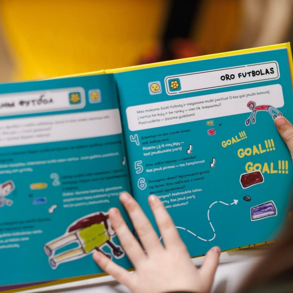 У кнізе чытачы знойдуць 22 жывыя гульні, якія вучаць рухацца, слухаць, адчуваць сябе і іншых. І самае галоўнае — весяліцца разам. Акрамя таго, гульні падзелены па тэмах: дыханне, цела, кантакт, артыкуляцыя, увага і фантазія, каб любы мог хутка знайсці тое, што патрэбна менавіта зараз: супакоіцца, узбадзёрыцца, наладзіць сувязь з іншымі або проста пераключыцца і вярнуць сабе адчуванне цела.