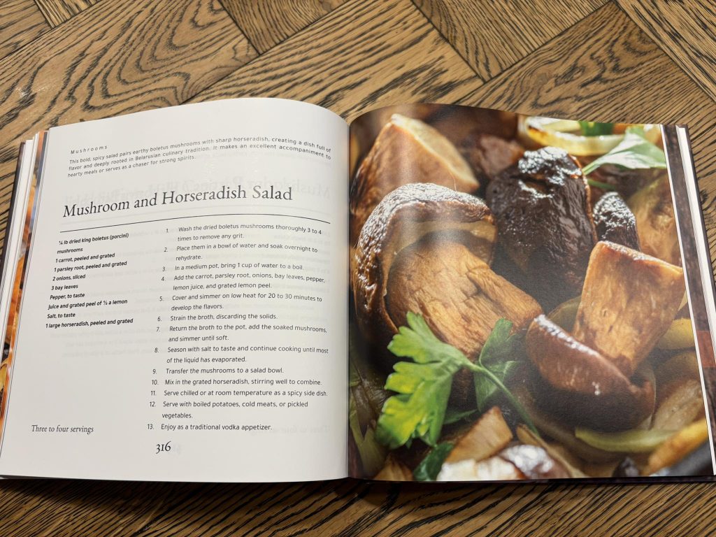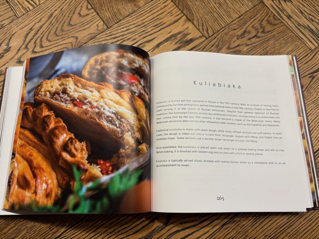 “The Belarusian Cookbook” — гэта грунтоўнае выданне, якое ўключае каля 200 рэцэптаў і больш за 50 здымкаў. Чытачы пазнаёмяцца як са шляхецкімі стравамі, так і з тым, што гатавалася на вясковых кухнях. У кнізе выяўлены сотні гадоў беларускіх, ашкеназскіх, татарскіх, польскіх і літоўскіх традыцый, якія суседнічалі і ўзбагачалі адна адну ў нашым краі. Некаторыя рэцэпты перадаваліся з пакалення ў пакаленне, іншыя рэканструяваныя са старых кніг, а многія ўпершыню з’яўляюцца на ангельскай мове — усе адаптаваныя для сучаснай кухні 21-га стагоддзя.