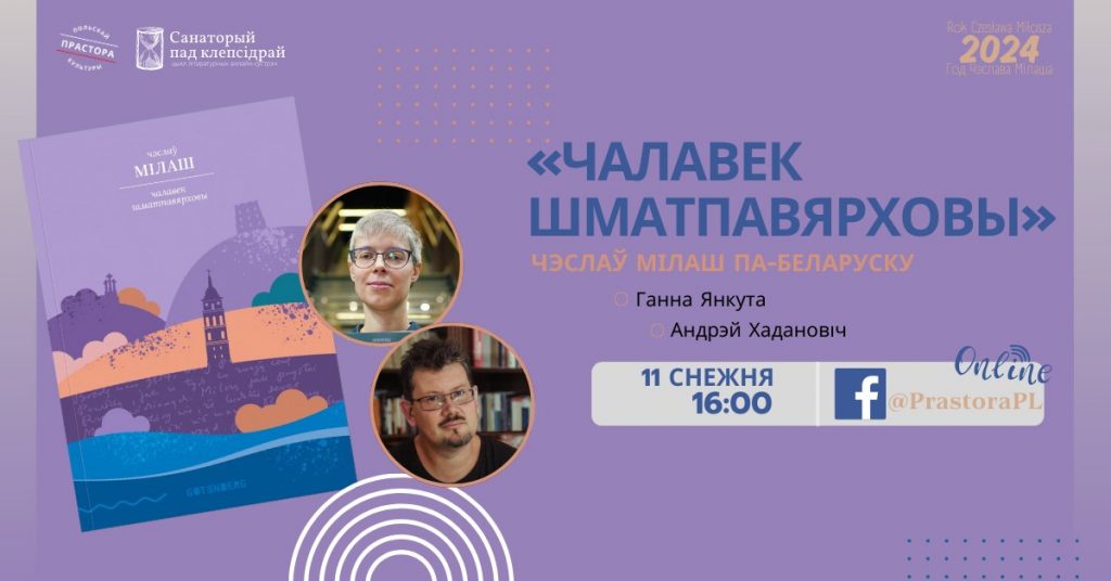 11 СНЕЖНЯ ў 16:00 пройдзе анлайн-прэзентацыя зборніка выбраных вершаў Чэслава Мілаша “Чалавек шматпавярховы” ў межах цыкла сустрэч “Санаторый пад клепсідрай”.