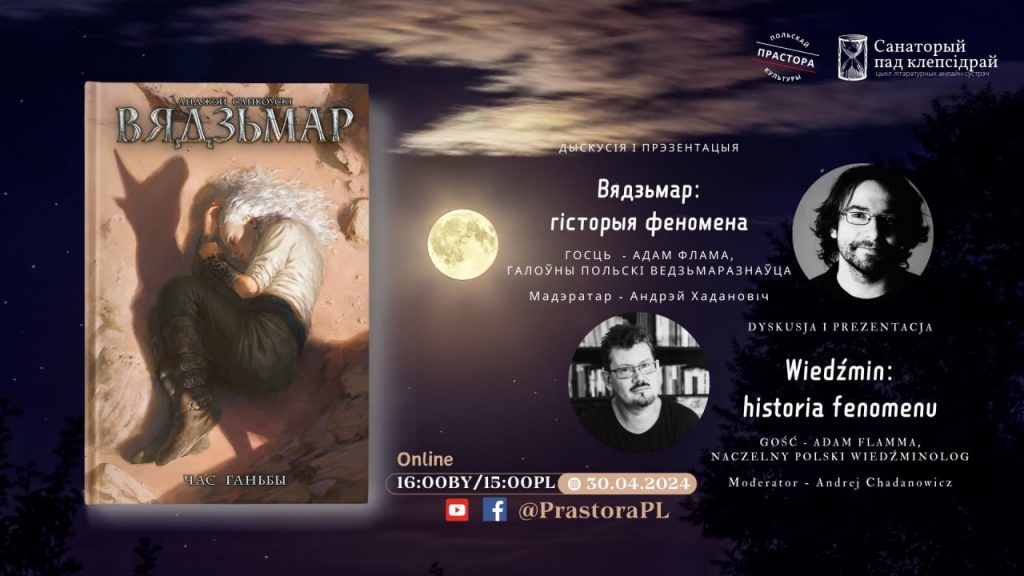 У межах цыклу літаратурных інтэрнэт-спатканняў “Санаторый пад клепсідрай” літаратар і выкладчык Андрэй Хадановіч правядзе дыскусію-размову з назвай “Вядзьмар: гісторыя феномена”. Госцем выпуску будзе Адам Флама – даследчык творчасці Анджэя Сапкоўскага і мастацкага свету “Ведзьмара”, галоўны польскі ведзьмаразнаўца, аўтар першай і адзінай біяграфіі Вядзьмара.