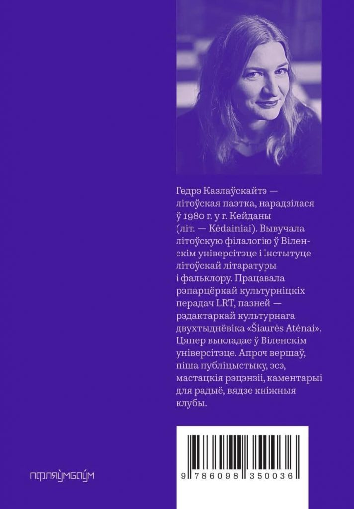 Асобнай кнігай паэзія Гедрэ Казлаўскайце, адной з самых яркіх і ўплывовых фігураў літоўскай паэзіі на сённяшні дзень, па-беларуску выходзіць упершыню. Выданне ўяўляе сабой выбранае з трох зборнікаў (Meninos (2014), Singerstraum (2016), Gintaro kambarys (2018)) і некаторыя дагэтуль невыдаваныя вершы.