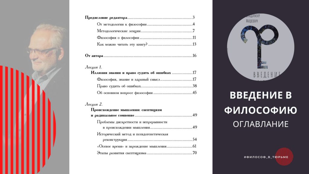 Гэта не падручнік па філасофіі, гэта не даведнік для пачаткоўцаў, гэта ўводзіны ў сістэму ўяўленняў аб мысленні і свеце, якія вось ужо амаль 30 гадоў развівае і практычна рэалізуе Уладзімір Мацкевіч, які цяпер знаходзіцца ў зняволенні. Гэта ўводзіны ва ўнікальную філасофскую сістэму, ключавой тэзай якой з’яўляецца “Думаць Беларусь”.