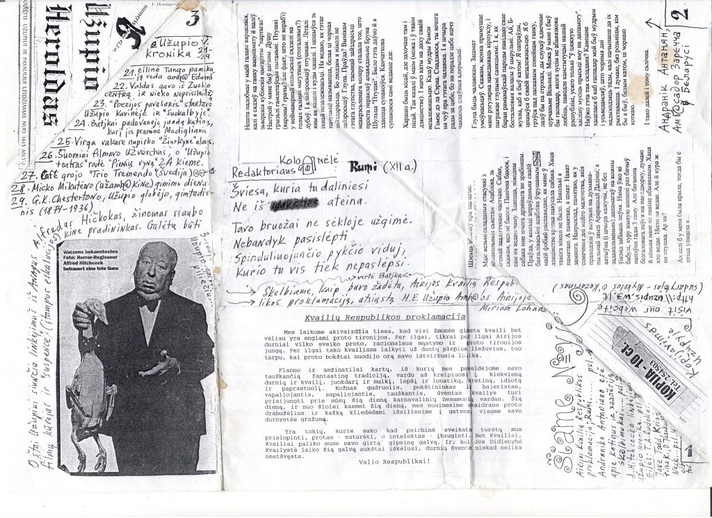 “Незалежная Рэспубліка Зарэчча” — сімвалічная незалежная краіна ў Вільні, са сваім урадам, прэзідэнтам, амбасадарамі ў іншых краінах, валютай і канстытуцыяй. І, таксама, газетай. Самвыдат Užupio Heroldas існуе ўжо болей за дваццаць пяць год і адлюстроўвае Зарачанскую Рэспубліку з усім яе шматгалоссем, творчым падмуркам, міфамі і ўяўленнямі жыхароў пра свабоду. Выдаецца і беларускі варыянт газеты — “Зарачанскі Зьвястун”. Адзін са стваральнікаў зіна, паэт і фатограф Андрэй Антонаў расказаў Bellit.info пра “Зьвястун”, літаратуру, Вільню, і, вядома, Зарэчча.