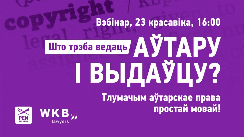 Да Міжнароднага дня кнігі і аўтарскага права, які адзначаецца 23 красавіка, Беларускі ПЭН разам з экспертамі з “WKB Lawyers” падрыхтавалі вэбінар, прысвечаны ключавым аспектам аўтарскага права ў літаратурнай сферы (польскае і еўрапейскае прававое рэгуляванне).