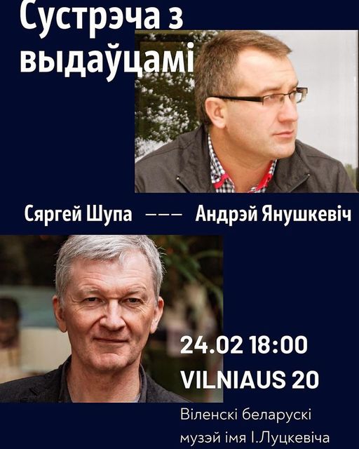У суботу 24 лютага ў 18:00 у Цэнтры беларускай супольнасці і культуры ў Вільні (Vilniaus g., 20) пройдзе сустрэча з беларускімі незалежнымі выдаўцамі Андрэем Янушкевічам (выдавецтва “Янушкевіч”) і Сяргеем Шупам (выдавецтва Vesna Books).