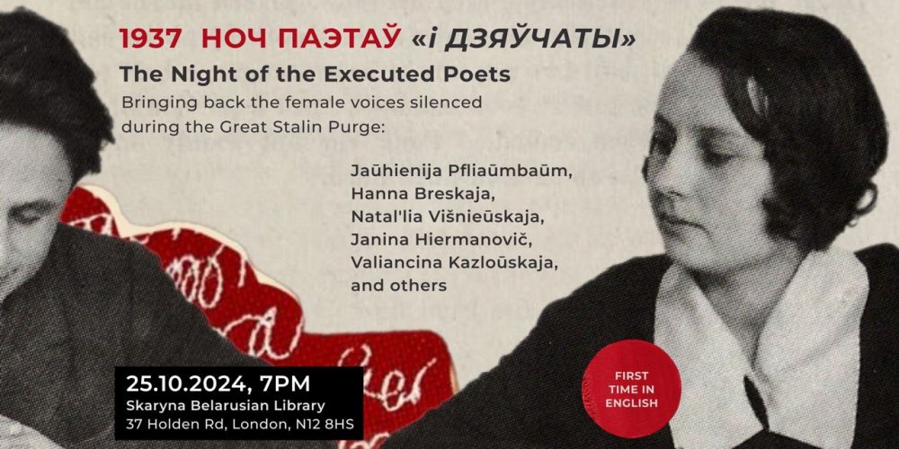Бібліятэка імя Францыска Скарыны ў Лондане і Англа-беларускае таварыства арганізоўваюць 25 кастрычніка вечар прысвечаны памяці расстраляных у 1937 годзе паэтаў і забытым паэткам.