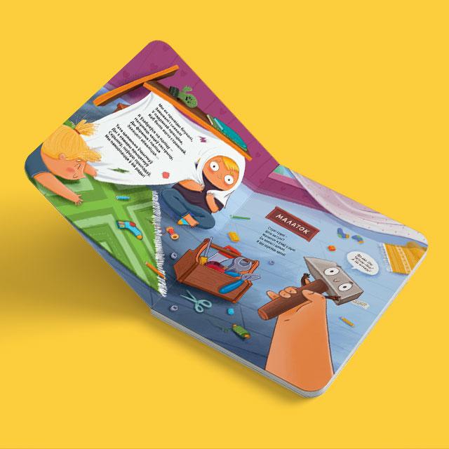 Кніжка складаецца з 12 гісторый пра інструменты, якія праілюстравала мастачка Воля Кузьміч. Усе інструменты, сярод якіх малаток, рулетка, дрыль, рубунак і іншыя, атрымалі імёны, якія можна будзе знайсці на старонках кніжкі.