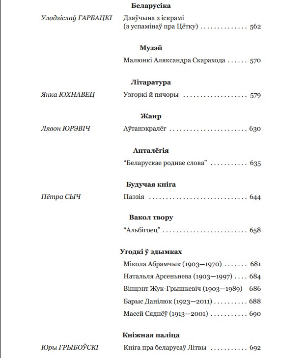 У “Музэі” публікуюцца ілюстрацыі з архіву БІНіМу, зробленыя беларускім пэдагогам і мастаком-эмігрантам Аляксандрам Скараходам для праекту кнігі беларускіх казак, плянаванай да выданьня ў 1950-х гг. У рубрыцы “Літаратура” зьмешчаны драматычны нарыс Янкі Юхнаўца “Узгоркі й пячоры”, напісаны ў 1953 г. і прысьвечаны часу Другой сусьветнай вайны. У разьдзеле “Жанр” пададзены “Аўтанэкралёг” Лявона Юрэвіча.