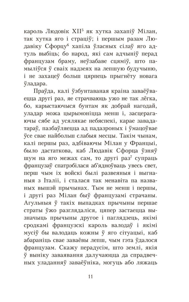 “І калі ўжо ўладар павінен умець дзейнічаць па-звярынаму, то лепей за ўсё яму прыпадобніцца да льва і лісіцы, бо, калі ён будзе толькі львом, то не ўратуецца ад пастак, а калі толькі лісіцай, не ўратуецца ад ваўкоў. А значыць, каб распазнаць пасткі, яму трэба быць лісіцай, а каб адпудзіць ваўкоў – ільвом”.