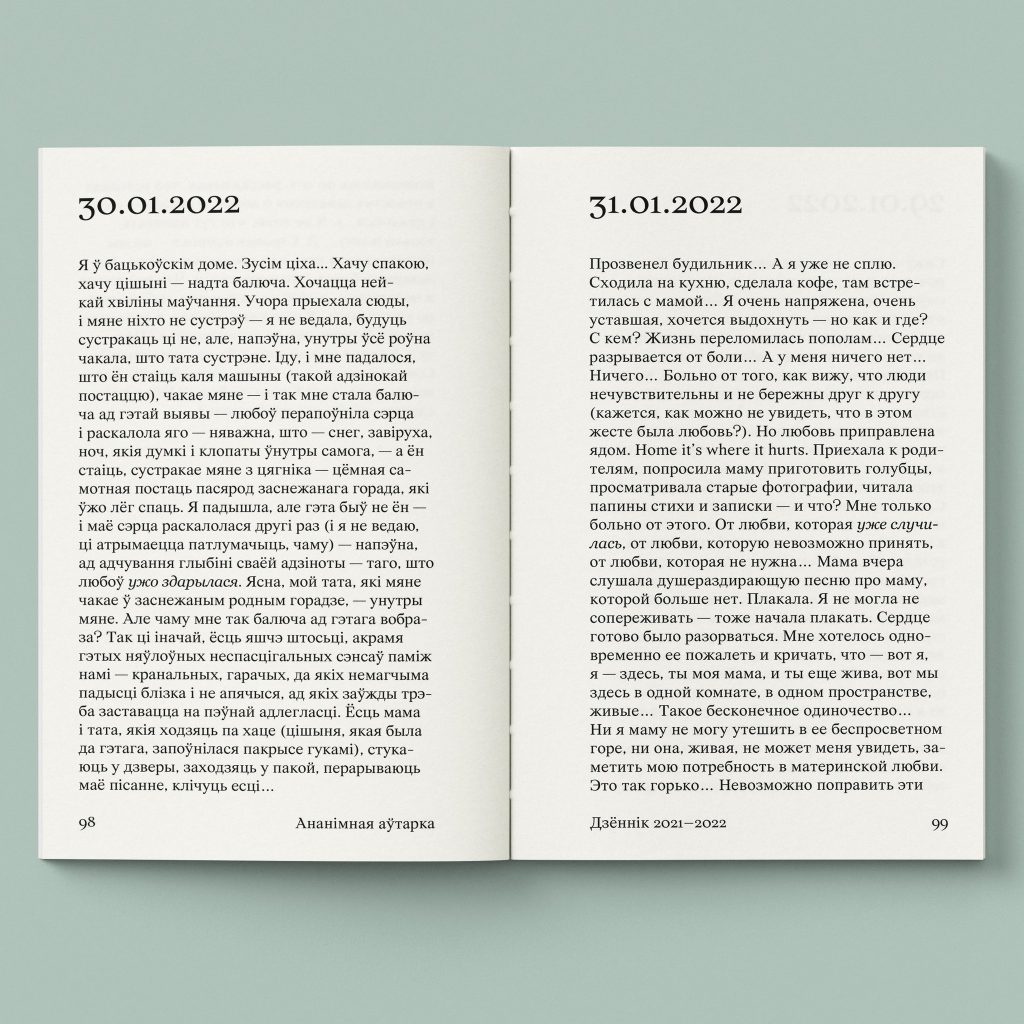 Выдавецтва “Мяне Няма” анансавала выхад кнігі “Дзённік 2021–2022”, у якой ананімная аўтарка робіць стэнаграму пачуццяў і намагаецца жыць жыццё пасля 2020-га, але не можа гэтага (з)рабіць.