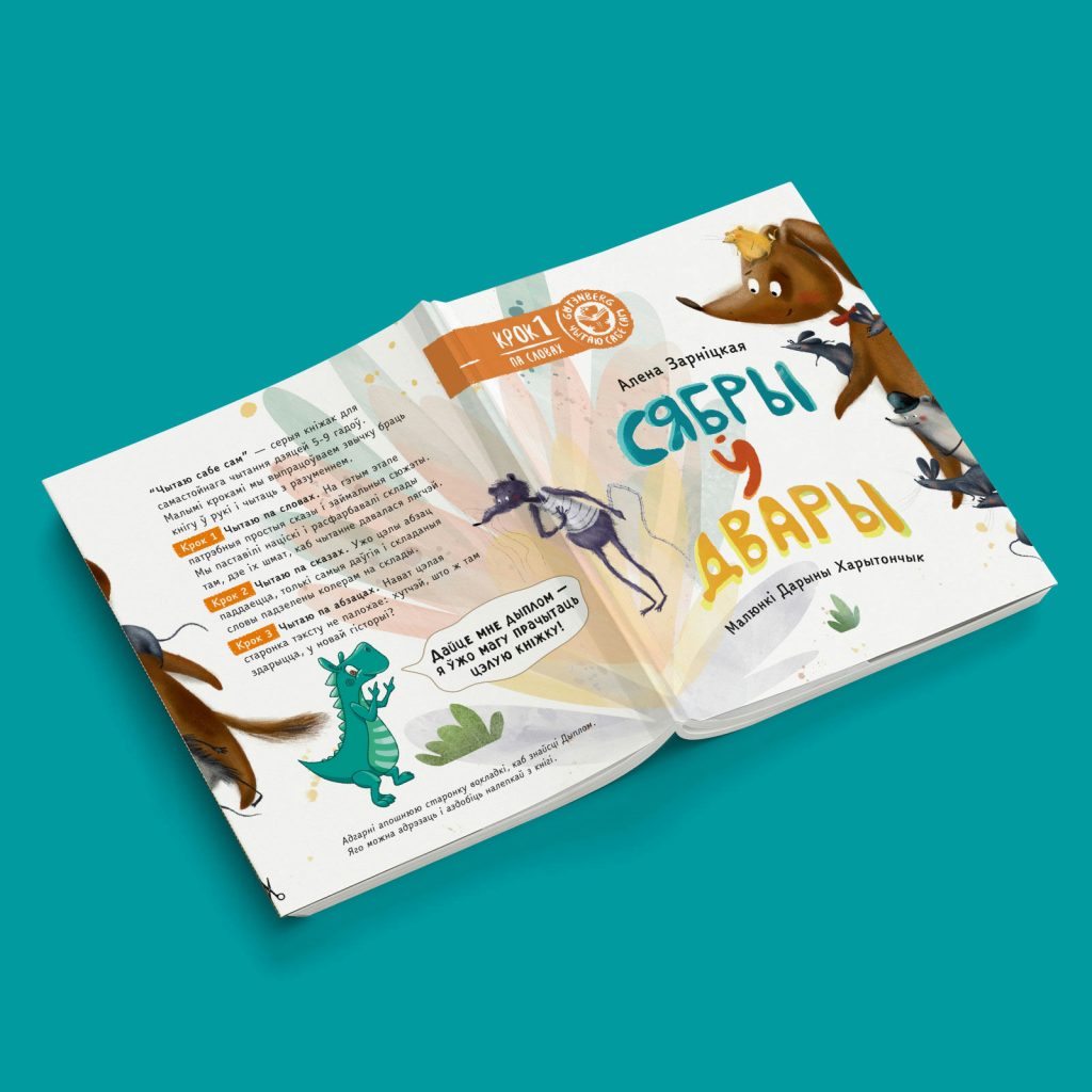 На гэтым этапе патрэбныя простыя сказы (1-2 на старонку) і займальныя сюжэты. Выдаўцы паставілі націскі і расфарбавалі склады там, дзе іх шмат, каб чытанне давалася лягчэй.