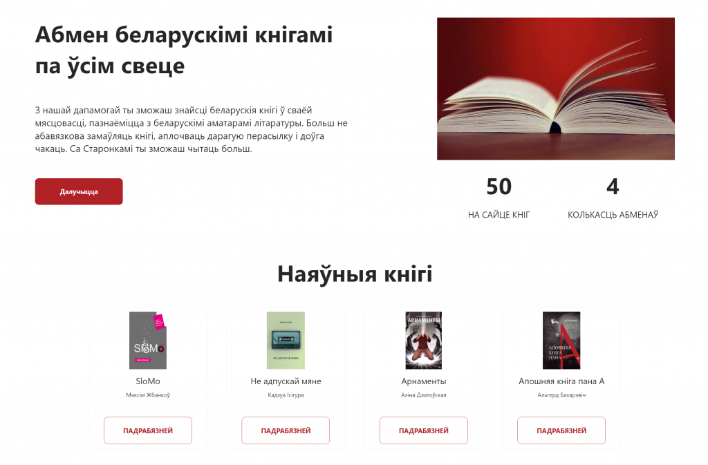 Першыя карыстальнікі рэсурсу ўжо дадалі 50 кніг і здзейснілі 4 абмены.